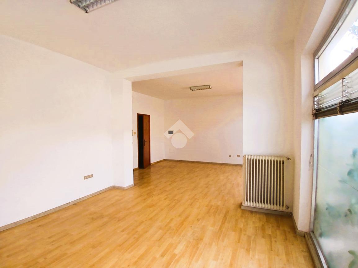 Situato al piano medio, l'ufficio offre due ampi locali caratterizzati da ampie vetrate che garantiscono luminosità e una piacevole vista sull'esterno. La disposizione interna è completata da un bagno, rendendo l'ambiente pratico e confortevole per diverse attività professionali.