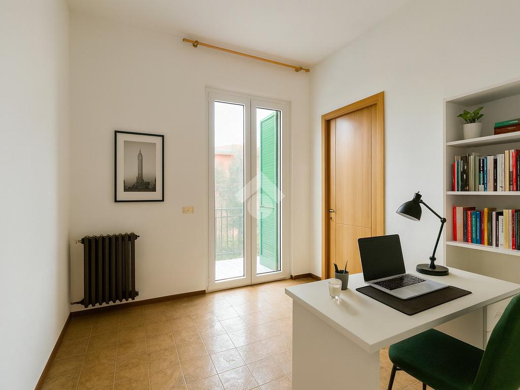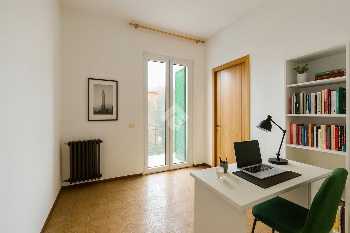 L'immobile si sviluppa su due livelli collegati da scala interna; al piano terra zona giorno con sala da pranzo collegata direttamente al giardino tramite porta-finestra, rispostiglio e bagno; al piano primo tre camere da letto matrimoniali, bagno e studio con terrazzo.
